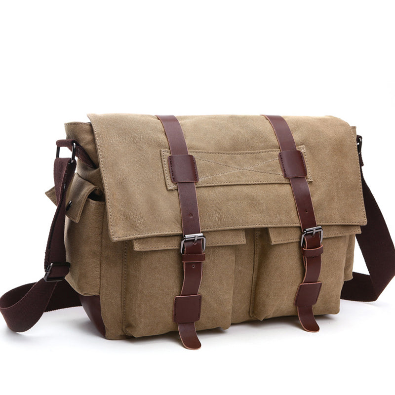 A csomag tartalma: 1 db nagy kapacitású férfi vászon válltáska
