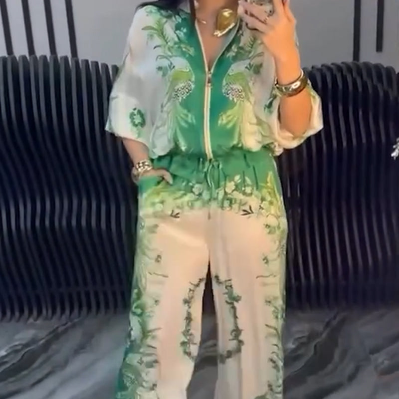 Elegáns virágmintás: Ez a kétrészes készlet finom virágnyomatokkal rendelkezik, amelyek elegáns megjelenést adnak, amely könnyedén kiemeli az Ön kifinomult stílusát hétköznapi és hivatalos alkalmakra egyaránt.
